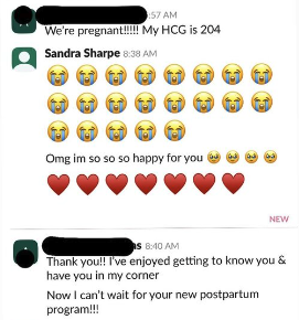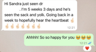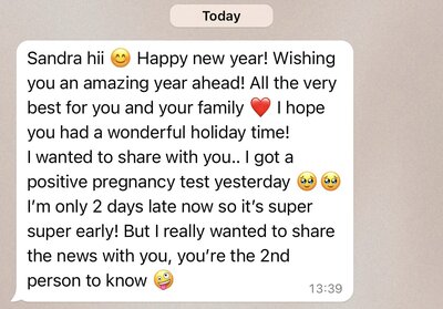 "Sandra! I can't believe I'm typing this but we found out... I'm pregnant!!"