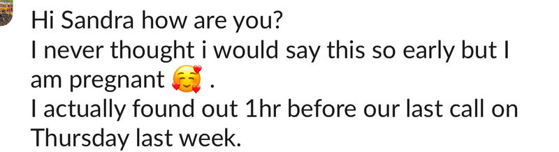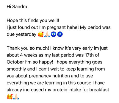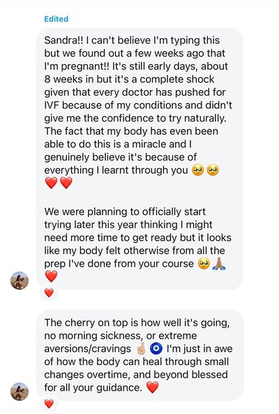You may remember I had two miscarriages and an ectopic pregnancy... but I'm now 11 weeks pregnant and everything is going well with the pregnancy! Just sending this as a thank you for the most valuable 12 weeks of my life. Aside from all the physical improvements I've seen, the value of what I learned about my body is priceless. This knowledge has made me more confident and happier in my body. It's a shame that most women don't know half the stuff you taught us!!